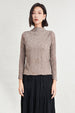 The half-turtleneck design adds a touch of elegance while providing just the right amount of coverage, making it ideal as an inner layer or a stand-alone statement piece. The pleated fabric offers comfort and natural stretch, while the lace and chiffon splicing create depth and texture for a high-end finish.