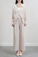 Refresh your wardrobe with this pleated two-piece set featuring a floral bud-inspired cardigan paired with flowing wide-leg pants. The soft pleats create graceful movement, while the relaxed yet elegant silhouette flatters every figure. Lightweight and comfortable, this set is perfect for travel, casual outings, or evening gatherings. Style it with sandals for a relaxed daytime look or with heels and accessories for an effortlessly polished outfit.