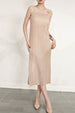 Step into effortless elegance with this pleated slip dress — a perfect blend of artful design and summer comfort. Featuring a soft boat neckline and a sleek midi silhouette, this dress gently hugs the body while the flowing pleats move beautifully with every step.