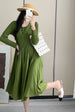 The round neckline and long sleeves make it perfect for cooler weather, while the cinched waist flatters the figure and flows into an A-line skirt for a timeless, feminine silhouette. The solid color design ensures effortless styling, whether paired with statement accessories for a dressy look or kept simple for a refined, everyday outfit.