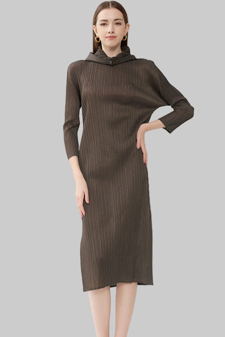 Stay cozy and chic this winter with the Pleats Art Style A-Line Pleated Dress. Featuring a hooded neckline and long sleeves, this dress blends comfort with elegance in one effortless piece.