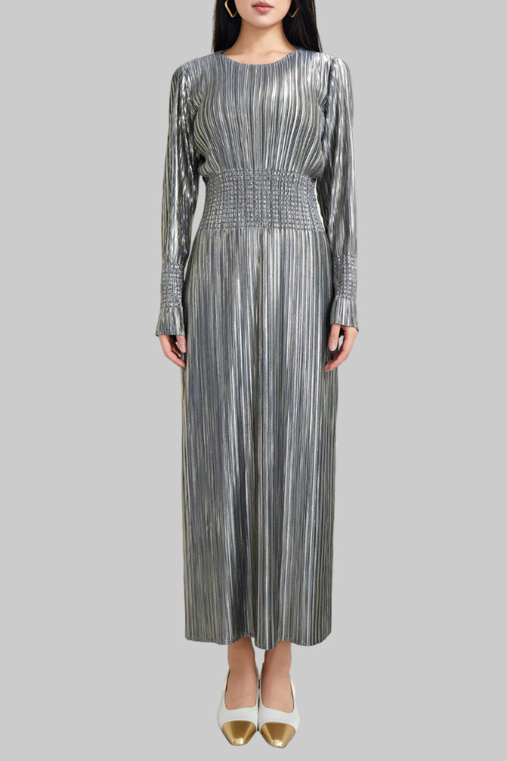The waist pleats highlight the shape and give the dress a flattering look.