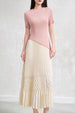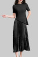 This Pleats Art Style Two-Piece Set includes an irregular pleated top and a matching elastic waist skirt.