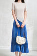 The top has a unique cut that looks modern and stylish, while the skirt is easy to wear with its comfortable fit.