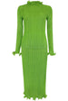 This Pleats Please skirt suit is light, soft, and easy to wear. The fresh green color gives it a lively and modern look, while the pleated fabric is wrinkle-free and comfortable. The A-line skirt makes the body look slimmer and taller, and the matching top completes the outfit with simple elegance.