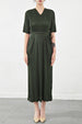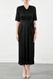 This Pleats Please V-neck dress is simple, light, and elegant. The short sleeves keep it cool and easy to wear, while the pleated fabric makes it soft and wrinkle-free. The V-neck design makes the neckline look longer, and the loose fit helps the body look slimmer and taller.